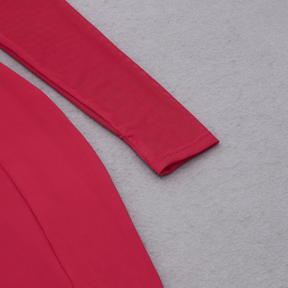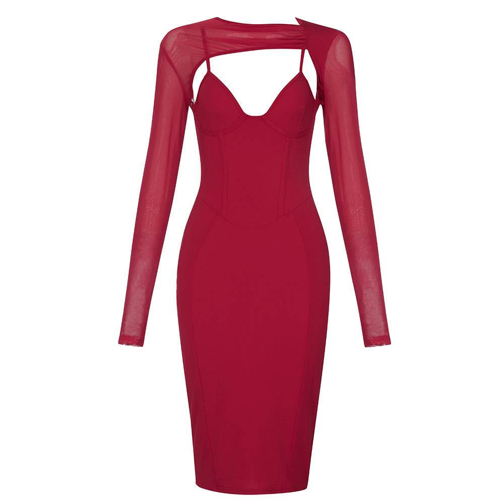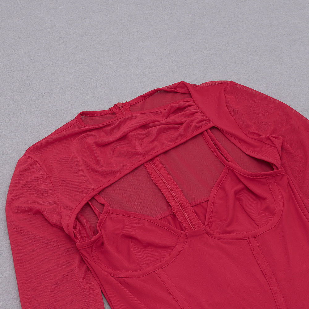 Round Neck Long Sleeve Cut Out Midi Bodycon Dress