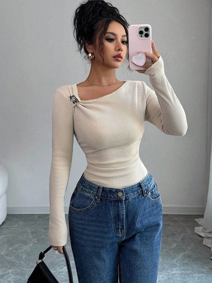 Off-The-Shoulder Knitted Top With A Base Layer