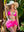 Pink Print V-Neck Long Sleeve Suit Skirt