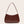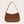 Bolso de un solo hombro color caramelo con diseño de baguette debajo del brazo