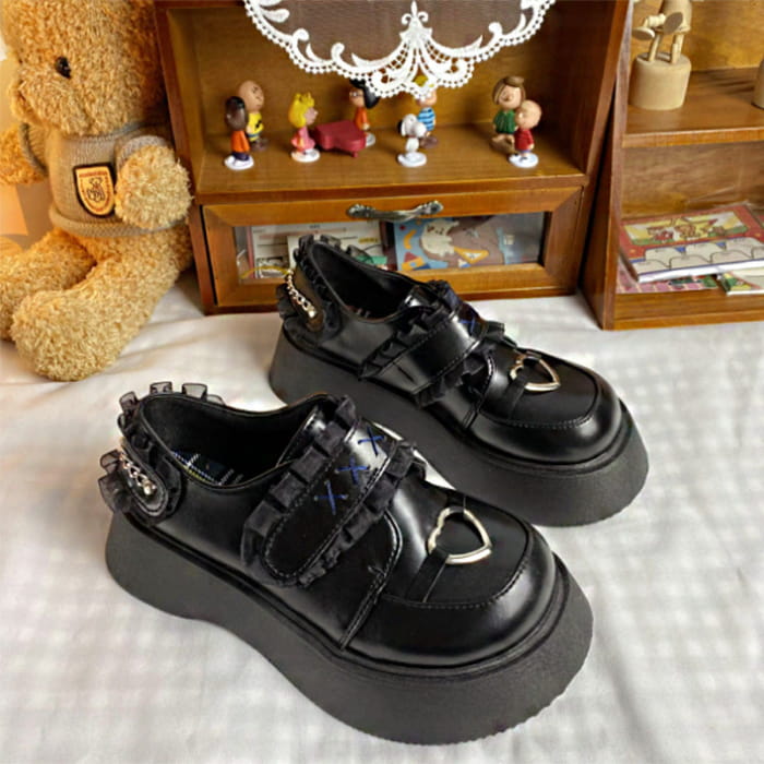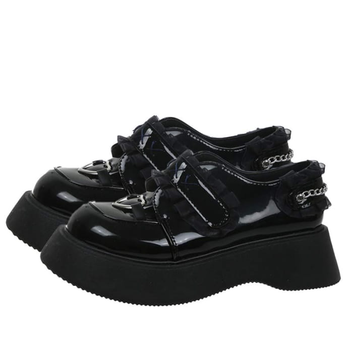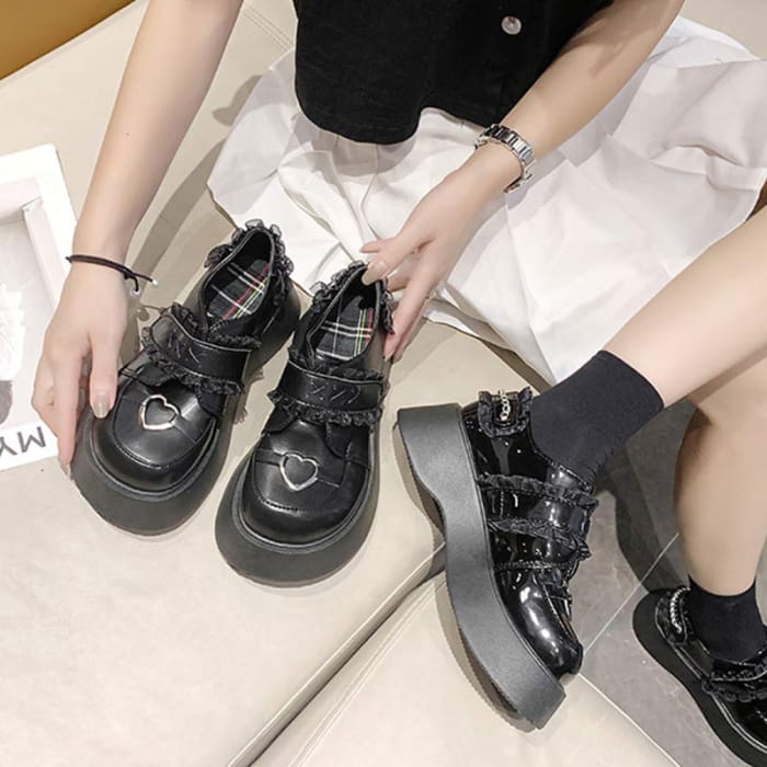 Black Platform Lace Lolita Mary Janes Shoes